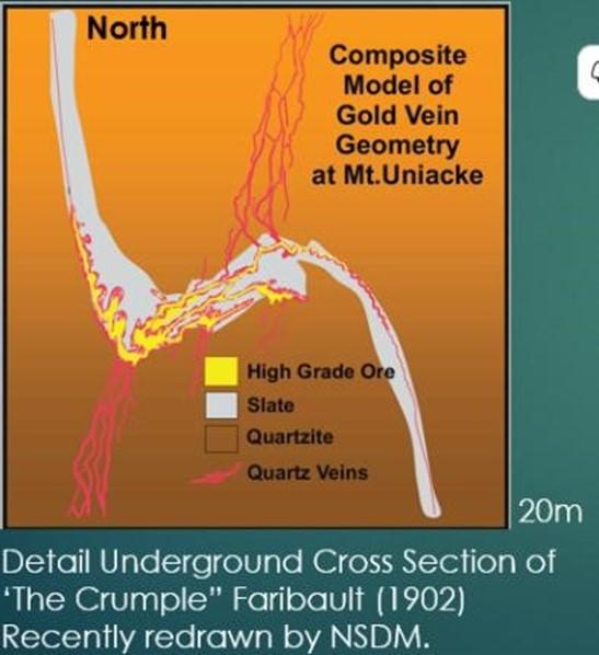 Faribault’s original insight, highlighted by W. Malcolm in a 1929 government report, remains the foundational logic for today’s exploration. “In no part of the district has mining been carried to any great depth, and it seems probable that in many cases the workings have not been carried to the bottom of the pay-shoots… The Crumple already described… probably extends to greater depth and produces rolls in other veins farther north that might be worth exploring.”
