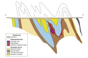 The Hydro area covers an interpreted fold hinge that could provide a thickening of projected Cu and Ni mineralization proximal to the Lion and Tiger zones. An analogue deposit we believe is comparable to the Nisk and Lion deposits is the Thompson nickel deposit. A cross section of the Thompson deposit is shown in Figure 4.