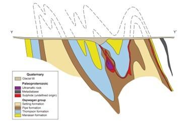 Figure 4: Cross-section through the Thompson Structure facing northeast (line Y-Y’, figure 9; Bleeker 1990). (CNW Group/Power Metallic Mines Inc.)