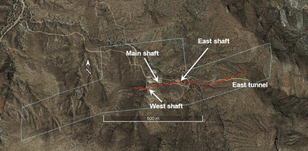 Discovered in 1875, the Silver King mine was one of Arizona’s most important historic producers, yielding nearly 6 million ounces of silver at grades of up to 61 oz/t. The Silver King mine sits only 3 km from the main shaft of the Resolution Copper project — a joint venture between Rio Tinto and BHP and one of the world’s largest unmined copper deposits with an estimated copper resource of 1.787 billion metric tonnes at an average grade of 1.5% copper(1). The unique land position is fully surrounded by Resolution Copper’s claim block, offering strategic upside. Selected samples from small-scale production in the late 1990s returned grades as high as 644 oz/t silver (18,250 g/t) and 0.53 oz/t gold (15 g/t), indicating that high-grade mineralization remains.