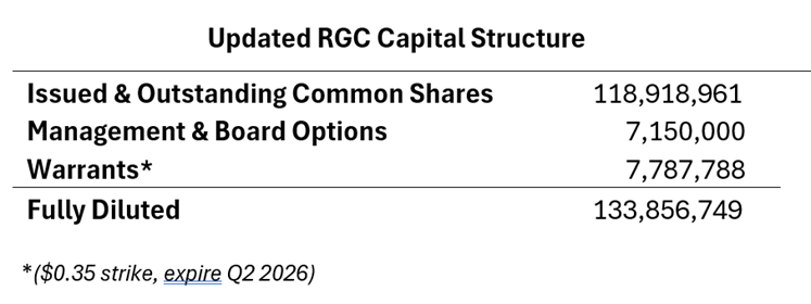 The financing also simplifies the Company’s capital structure, enhances financial flexibility, and significantly strengthens working capital as Relevant Gold enters a pivotal growth phase. As a result, only 7,787,788 warrants remain outstanding (at an exercise price of $0.35), substantially reducing the prior overhang. The Company’s updated capital structure is as follows: