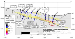 Note: Figure reflects all drill results in the section as at November 17, 2025.