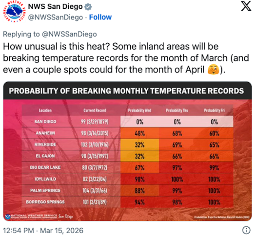 CNN reported the extreme heat wave may be comparable in its intensity and rarity to the 2021 Pacific Northwest heat dome, though it will not be as hot. It is, after all, only March. Still, states CNN: