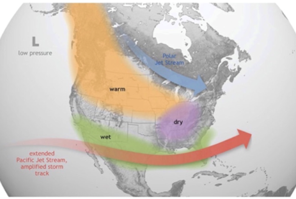 Wildfires burned 24,900 square kilometers in BC, nearly double the 2018 record of 13,600 square km. That’s an area almost the size of Vancouver Island. Major fires included Donnie Creek, the province’s largest-ever blaze at a staggering 5,800 square km.It’s been well-established that warmer, or colder-than-average ocean temperatures have an influence on weather. According to the National Oceanic and Atmospheric Administration (NOAA), El Nino causes the Pacific jet stream to move south and spread further east. During winter, this leads to wetter conditions than usual in the southern US and warmer and drier conditions in the northern US and Canada.