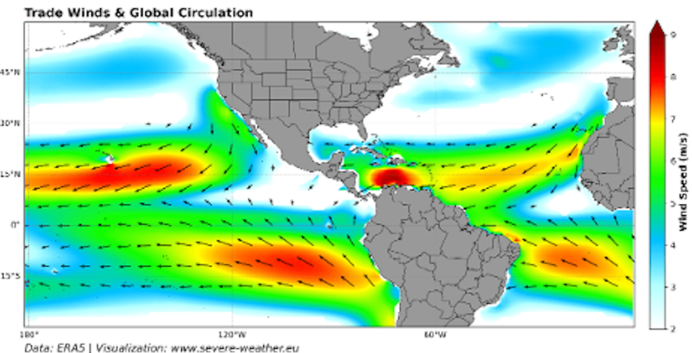Such an intense warming of the tropical Pacific can fundamentally alter the global jet stream and trigger a domino effect that extends across North America, Europe, and the rest of the globe.