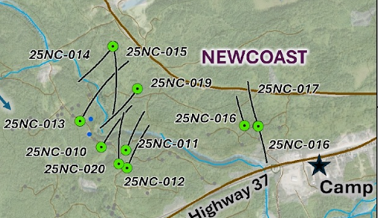 Results are pending for 5,243m of drilling over 11 drill holes from the Newcoast prospect which lies 2 kilometers to the south.