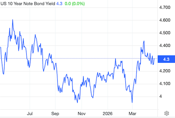 Gold has an inverse relationship with US Treasury yields. As yields rise, gold normally falls, as interest-bearing assets become more attractive compared to gold, which offers neither interest nor a dividend.