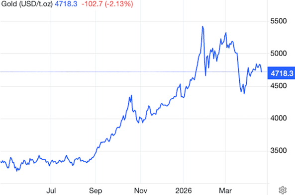 “The combination of geopolitical risk, persistent central bank buying, the inflation spike from the oil shock, and the fiscal effect of the conflict should all support gold,” he said.