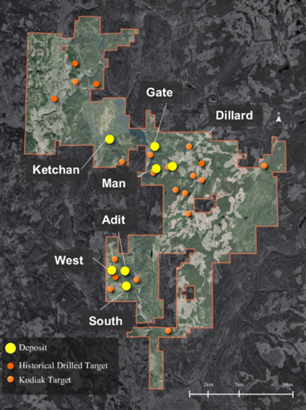 “This year’s exploration program will prioritize resource expansion and test multiple target areas with the potential to add meaningful tonnage to our existing deposits,” said Kodiak’s Chairman Chris Taylor.