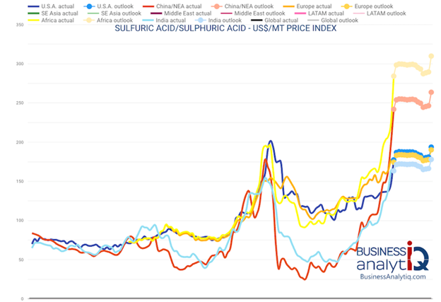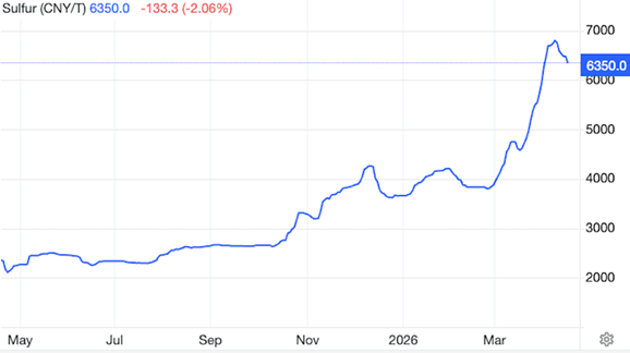 Indeed, the Middle East accounts for about 40% of global sulfur exports. Making matters worse, China is about to slap a ban on sulfuric acid exports starting May 1.