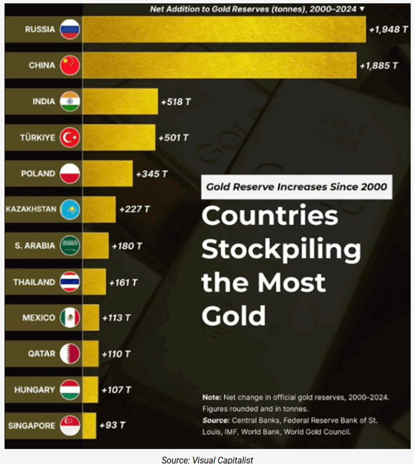 Central banks worldwide are on track to buy slightly less then 1,000 tonnes of gold in 2025, which would be their fourth year of massive purchases as they diversify reserves from dollar-denominated assets into bullion, consultancy Metals Focus said, via Reuters.