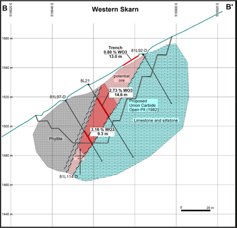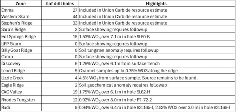 Historical internal resource and feasibility work indicate robust economics, including average mill grades of 1.14% WO₃ and strong recovery assumptions – again internal to Union Carbide and pre 43-101, none of the information on grade or resource numbers is to be relied on for investment purposes.