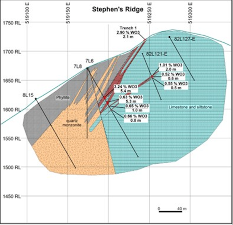 The historical work by Union Carbide includes 26,900m of drilling across 178 holes, identifying 15 tungsten occurrences over a 15-km strike length, highlighting significant scale and upside.