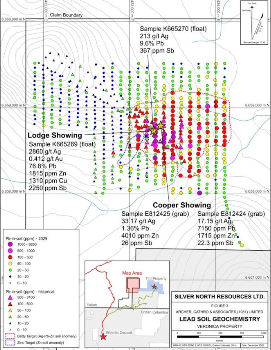 At the Veronica property — one of three properties comprising the GDR Project — adjacent to the Tim property (under separate option to Coeur Mining) in the Silvertip area of the southern Yukon, final results from the 2025 field exploration program were released on Dec. 11.