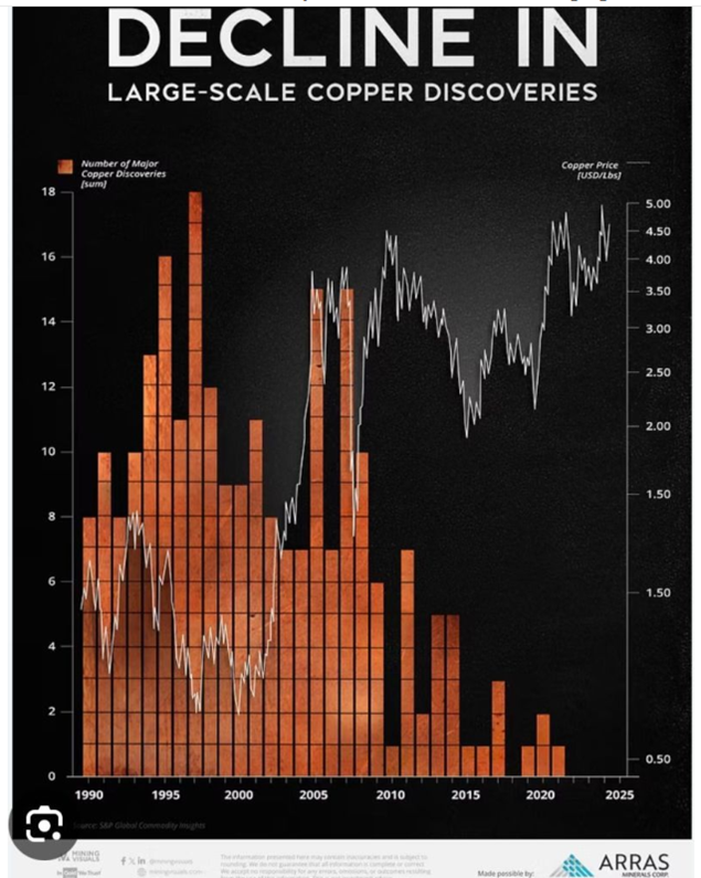 There has been a dearth of new copper discoveries in recent years, and the grades of existing copper mines are dropping, which, when added to operational misses, are making the supply problem worse.