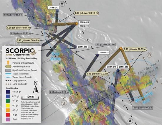 Scorpio Gold Corp. (TSX-V: SGN) (OTCQB: SRCRF) (FSE: RY9) is pleased to announce further results from Phase 1 of its 2025 drilling program at the Manhattan District Project, Nevada, USA.
