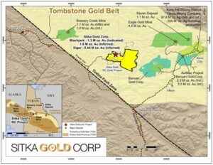 Sitka Gold Corp. is a well-funded mineral exploration company headquartered in Canada with over $43 million in its treasury and no debt. The Company is managed by a team of experienced industry professionals and is focused on exploring for economically viable mineral deposits with its primary emphasis on gold, silver and copper mineral properties of merit. Sitka is currently advancing its 100% owned, 431 square kilometre flagship RC Gold Project located within the Tombstone Gold Belt in the Yukon Territory. The Company is also advancing the Alpha Gold Project in Nevada and currently has drill permits for its Burro Creek Gold and Silver Project in Arizona and the Coppermine River Project in Nunavut, all of which are 100% owned by Sitka.