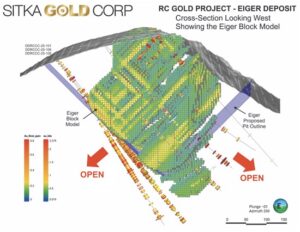 Sitka Gold Corp. (TSX-V: SIG) (FSE: 1RF) (OTCQB: SITKF) is pleased to announce additional analytical results from drilling completed at its 100% owned, road accessible RC Gold Project located within the Yukon’s prolific Tombstone Gold Belt. Drilling at the Eiger gold deposit has expanded the mineralized envelope beyond the current MRE boundary, with drill hole DDRCCC-25-109 intersecting 121.0 m of 0.75 g/t gold and 26.0 m of 1.28 g/t gold within 249.9 m of 0.58 g/t gold from 325.0 m outside of the current MRE. Analytical results are currently pending for 38 drill holes at RC Gold, including 26 from the new Rhosgobel discovery and the remainder from Pukelman, Contact, Bearpaw, and May-Qu.