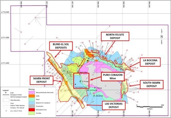 Figure 1: Location of Puro Corazon Claim Location Relative to Existing Cerro Las Minitas Deposits