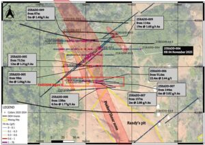 Dr. Dennis LaPoint, EVP Exploration and Business Development states that “We are very pleased with the continued expansion of the mineralized trend at Randy’s pit along strike and at depth. The high grades are positive for future development as we continue to expand the mineralization at the Randy’s pit further to the north.”
