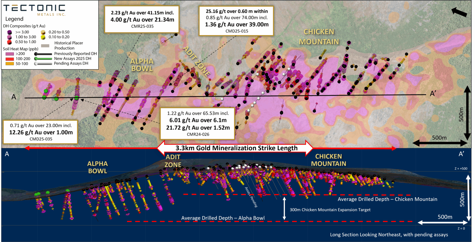 Alpha Bowl: Expanding The Chicken Mountain Drilled Mineralized Strike to 3.3 Kms