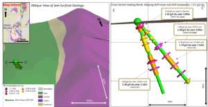A summary of the results released today for the 17 RC holes are presented by drill section in Table 1, and a summary of the three diamond drill core results are presented in Table 2. Full assay results for the 17 RC and three core results can be found at this link: Click Here for Full Assay Results.