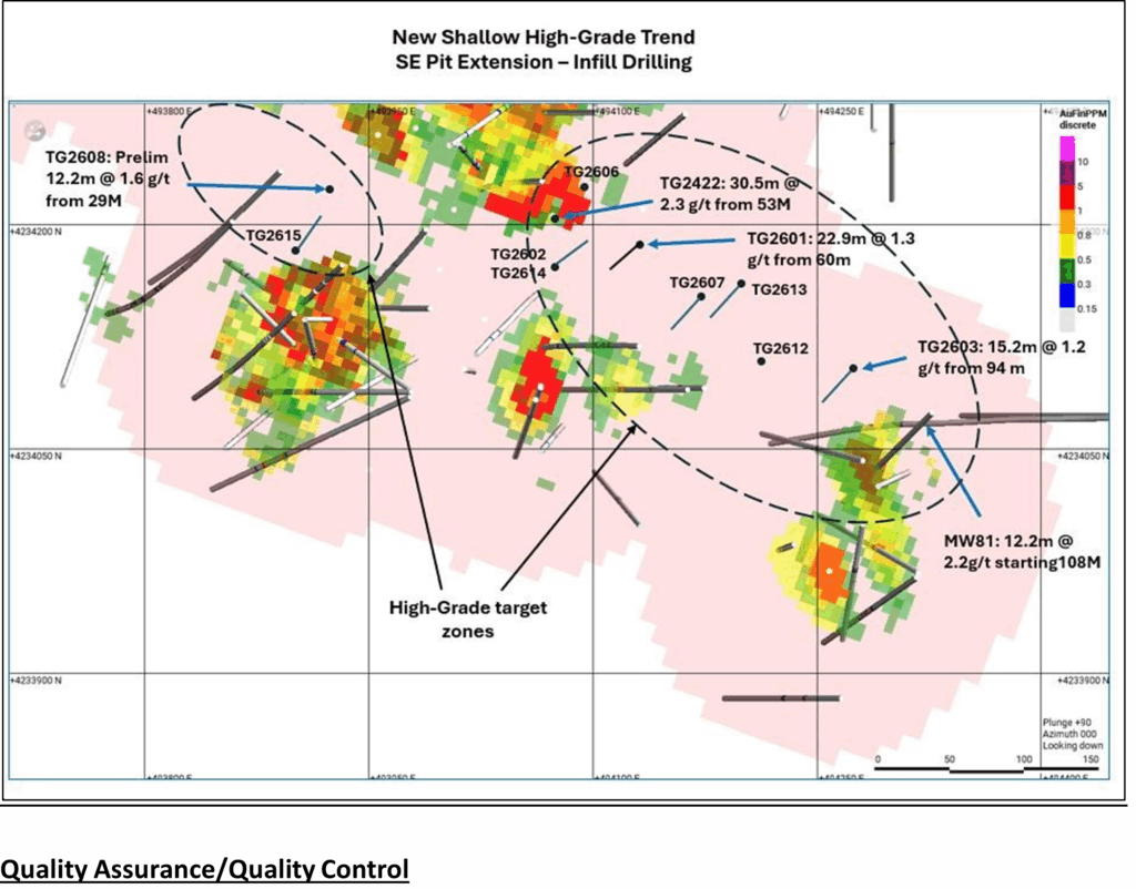 • TG2608: 2 m @ 1.6 g/t Au from 29 m depth (partial results received; additional assays pending).
