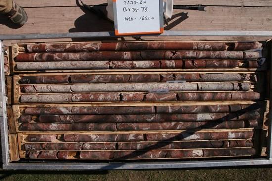 Figure 2. High-grade carbonatite mineralization with grades up to 5.21% TREO over 2.5m in borehole SL25-24 (155.5 – 158.0m).