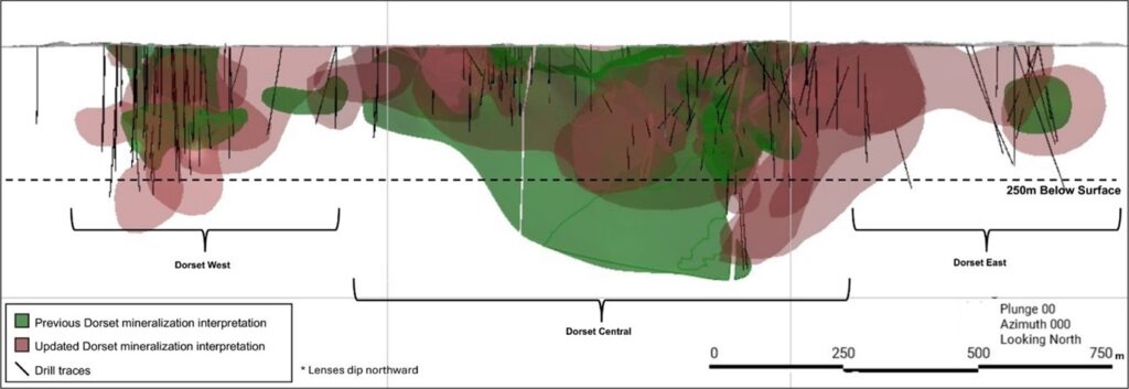 More than 14,000 metres of drilling was completed across Dorset in 2025, including the drilling completed by the previous owner of the property, Angus Gold Inc. in the first half of the year. The 2025 program was specifically designed to support the development of a new mineral resource estimate. Wireframes for the Dorset resource (Figure 7) have now been completed, and final resource numbers are expected to be disclosed in 2026. This work establishes a robust foundation for strategic planned resource expansion drilling next year.