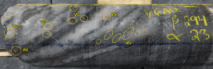 • Hole RLG-25-187 Intersected Vein 013 with 1m @ 28.5 g/t Au, from 116.25m to 117.25m. This high-grade intercept was complimented by visible gold spatially associated with quartz veining and strong silicification (Figure 3).