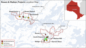 West Red Lake Gold Mines Ltd. is a gold miner development company that is publicly traded and focused on advancing and developing its flagship Madsen Gold Mine and the associated 47 km2 highly prospective land package in the Red Lake district of Ontario. The highly productive Red Lake Gold District of Northwest Ontario, Canada has yielded over 30 million ounces of gold from high-grade zones and hosts some of the world’s richest gold deposits. WRLG also holds the wholly owned Rowan Property in Red Lake, with an expansive property position covering 31 km2 including three past producing gold mines – Rowan, Mount Jamie, and Red Summit.