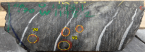• Hole RLG-25-192b Intersected Vein 013 with 1m @ 141.5 grams per tonne gold, from 76.1m to 77.1m. This high-grade intercept was complimented by visible gold spatially associated with quartz veining and strong silicification (Figure 1). Hole -192b also intercepted Vein 011 with 1m @ 17.55 g/t Au, from 27.6m to 28.6m.
