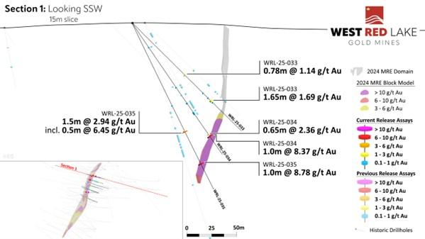 FIGURE 6: Fork drill section showing assay highlights for Holes WRL-25-033 through -035.
