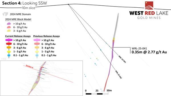 FIGURE 9: Fork drill section showing assay highlights for Holes WRL-25-041 and -042.