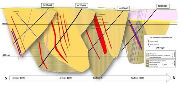 Gregory Duras, CEO and Director of Western Metallica Resources commented, “Western Metallica’s exploration team are encouraged by the first phase drill program results that imply the continuity of the sulphide trend on strike and at depth and confirm the presence of higher-grade copper mineralized zones within the broader resource envelope, which furthermore includes credits of Zn, Pb, Au and Ag, as well as the potential northern extension delineated by NCDD003. Considering that this is only a modest 100 metres extension to the mine levels, the potential at depth remains unknown and highly prospective given the intervals historically reported, which were, to a certain extent, validated throughout Phase 1 of this drill program.”